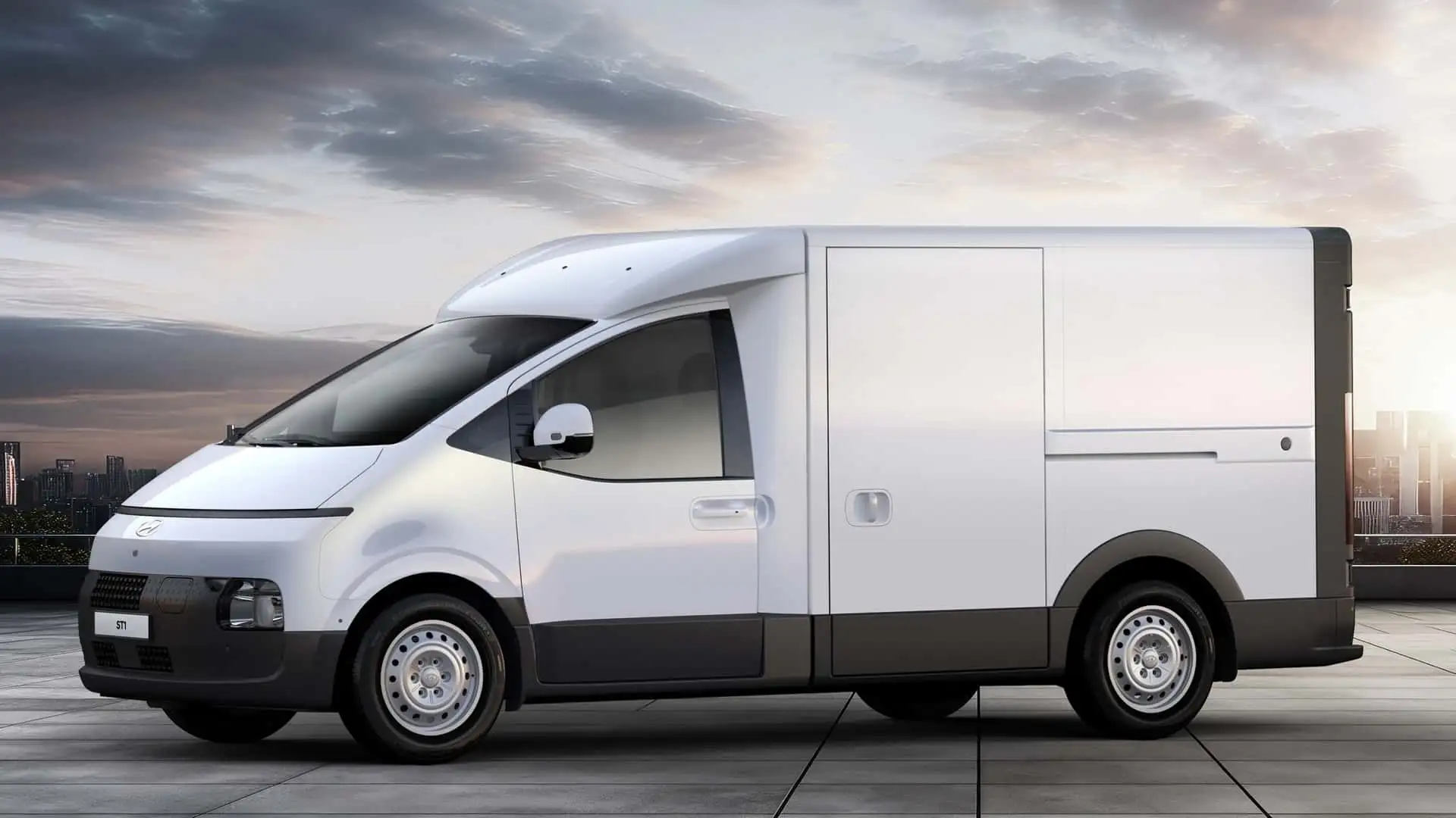 现代轿车再次带来新的惊喜。这次是 ST1。所谓的“Service Type 1”是一款全电动卡车,前面看起来像Staria ,后边能够依据各种客户的希望进行个性化规划。